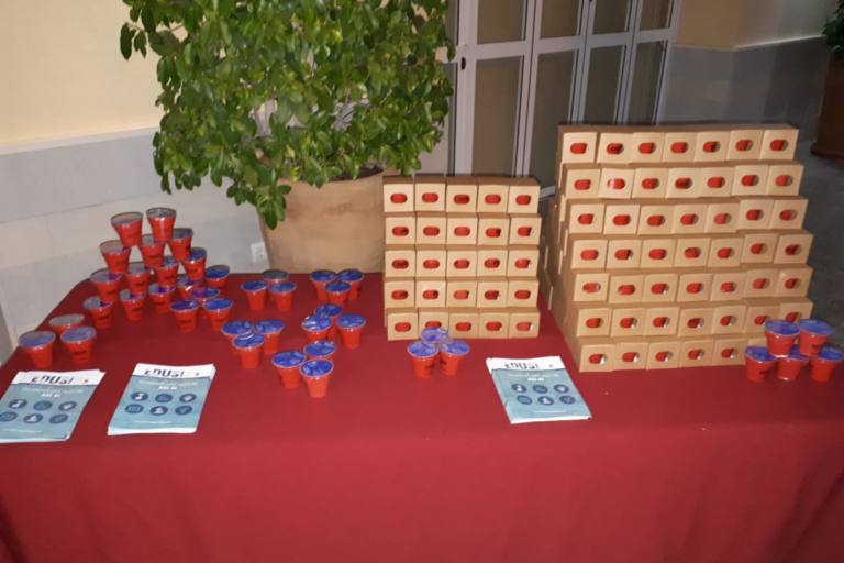 Descripción: Maceta biodegradable con semillas de petunias. Entrega: Evento de presentación de la Estrategia DUSI. Unidades: 420. Fecha: 27 de febrero de 2020. Fotografía: